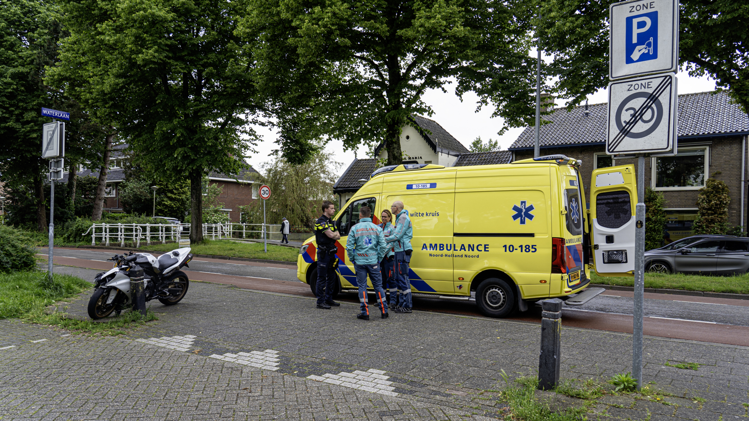 De bestuurder liet een spoor van zo'n 24 meter op de straat achter en overal lagen onderdelen van de motorfiets. Er kwam een ambulance ter plaatse, maar die kon al snel terugkeren. Na de val had de bestuurder zijn flink beschadigde motor tegen een paaltje gezet en is hij ervandoor gegaan.
