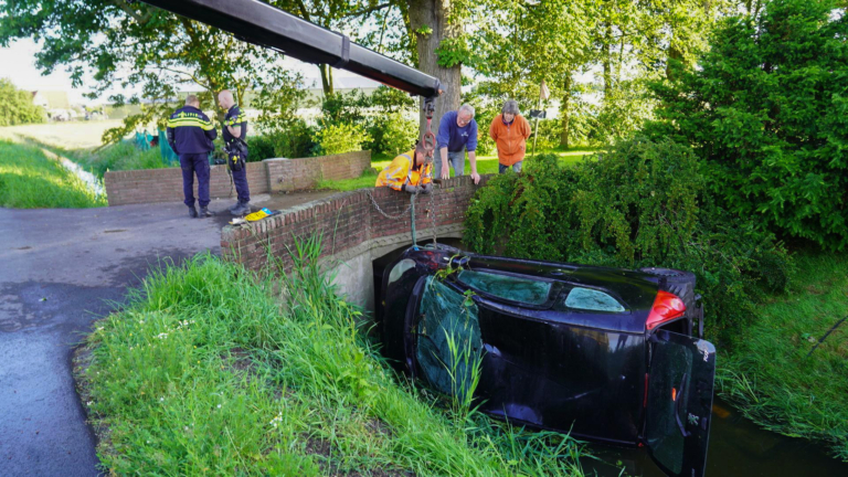 De eerste melding van het ongeluk kwam zondag even na 06:00 uur binnen bij de meldkamer. Vermoedelijk vloog de automobilist uit de bocht, reedt vervolgens tegen een stenenbrug en belandde in het water. Getuigen zagen de bestuurder wegrennen, maar de politie kon niemand vinden.