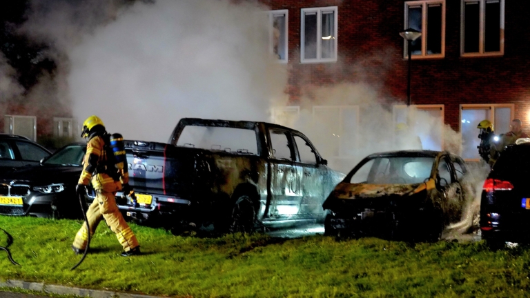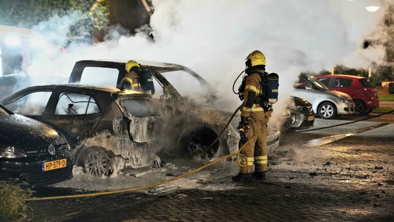 Twee op het Van Eedenplein in Heerhugowaard geparkeerde auto's zijn in de nacht van maandag op dinsdag door brand verwoest. Tegen de tijd dat de brand ontdekt werd en de hulpdiensten arriveerden waren beide voertuigen al niet meer te redden. Ook een derde - vlakbij geparkeerde auto - liep flinke schade op.