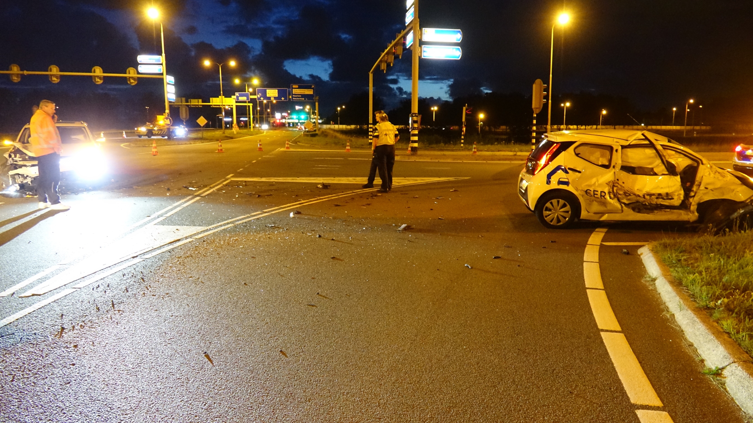 Dinsdagavond is een automobilist gewond geraakt bij een ongeval op de ongelijkvloerse kruising van de N242 en N243. Hoe het ongeluk heeft kunnen gebeuren is nog onduidelijk, maar de auto's hebben elkaar met behoorlijk wat snelheid geraakt.