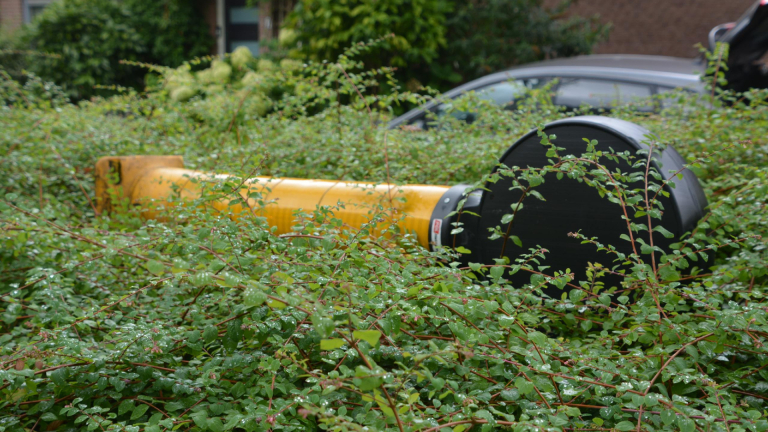 Op de Laan van Athene in Alkmaar is een automobilist zaterdagmiddag tegen een verkeerspaaltje aangereden, waardoor deze uit de grond is gekomen.