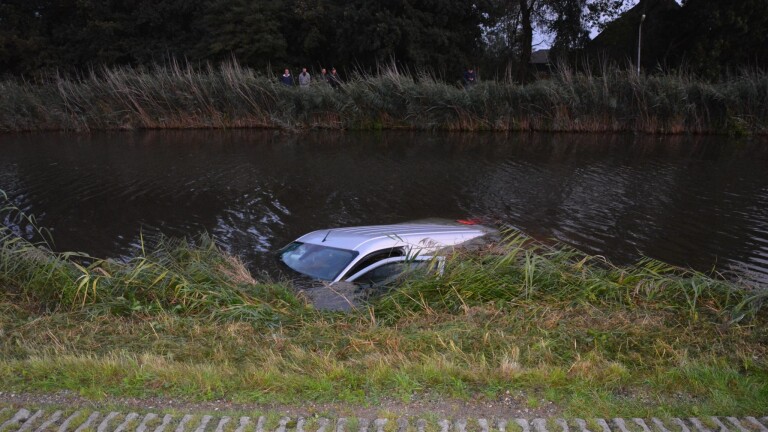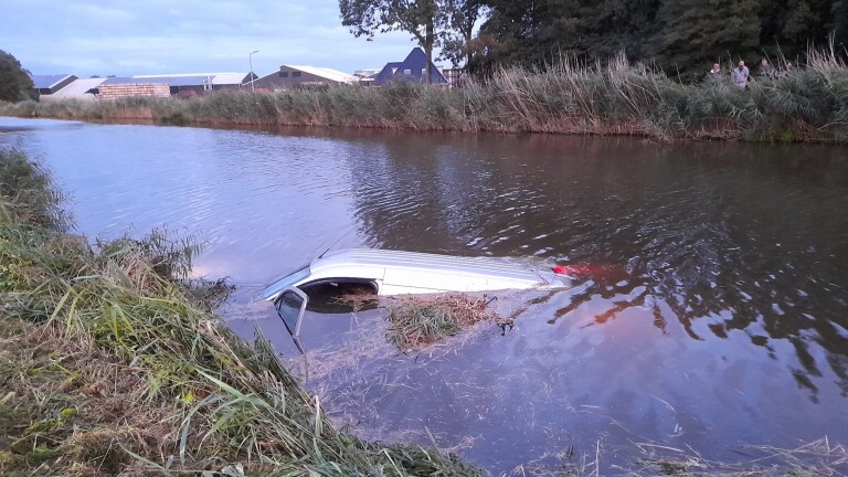 Volgens de brandweer moest de bestuurder van het busje uitwijken voor een dier dat overstak. Daardoor raakte het voertuig van de weg en reed het busje het water in.