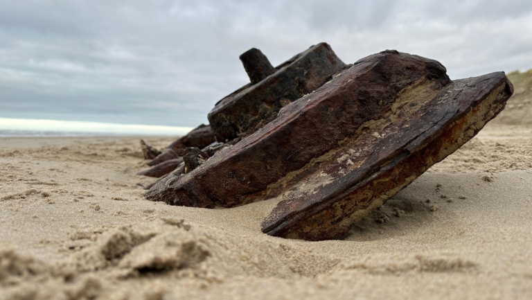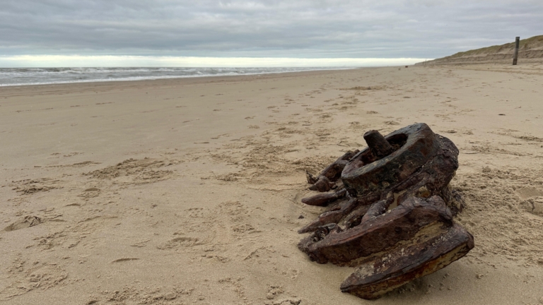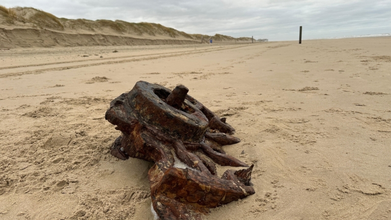 Al meer dan 100 jaar ligt het op het strand van Camperduin. Het wrak van oorlogsschip Prince George. Een jaar of tien heeft het onder een dikke laag zand gelegen, maar sinds afgelopen weekend zijn delen van het schip weer naar het oppervlakte gekomen. Bijzonder, maar het brengt ook gevaarlijke situaties met zich mee.