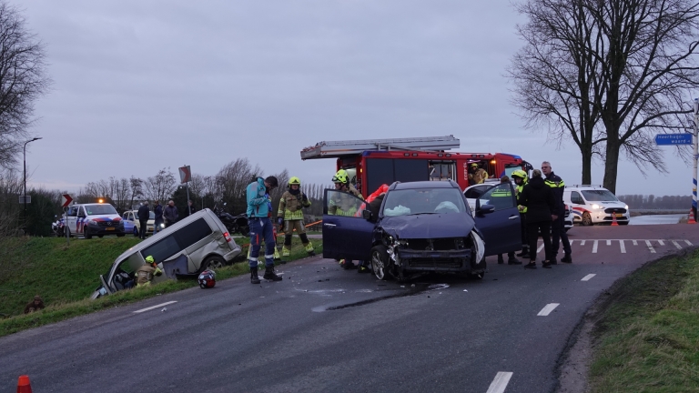 Dat de botsing stevig geweest moet zijn geweest blijkt uit de uitgeklapte airbags en dat er slachtoffers door de brandweer uit de voertuigen zijn gehaald. Het busje ramde na de botsing een paal en eindigde onderaan de dijk.