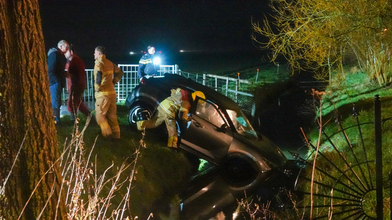 Door nog onbekende oorzaak wilden de bestuurder de parkeerplaats verlaten, maar de auto reed rechtdoor de berm in, het talud af, en het water in. Politie, brandweer en een ambulance kwamen ter plaatse. De brandweer heeft beiden geholpen om uit de auto te klimmen.