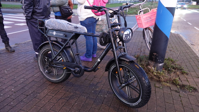 Politie en handhavers hebben het verkeersongeval afgehandeld. De fatbike leek weinig schade te hebben opgelopen. De auto heeft op zijn minst een nieuw bumperpaneel nodig, maar om thuis te komen zal duct-tape wel hebben volstaan.