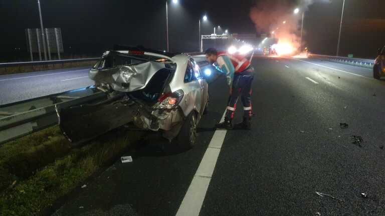 Rond 23:45 uur botste een auto achterop een andere auto op de rijbaan richting Beverwijk. Na de aanrijding vloog een van de auto's midden op de snelweg in brand.