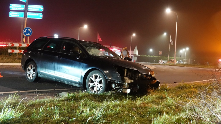 Een auto raakte zaterdagavond zwaar beschadigd bij een ongeval op de Provincialeweg N504 bij Noord-Scharwoude. De bestuurder schoot over de rotonde ter hoogte van de Oostelijke Randweg en kwam aan de overkant in het gras tot stilstand. Niemand raakte gewond.