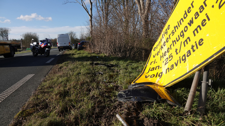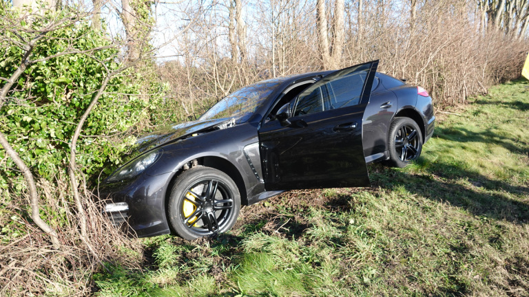 De man bestuurde een Porsche Panamera, toen hij door nog onbekende oorzaak van de weg raakte, een verkeersbord omver reed en tot stilstand kwam tegen een boom.