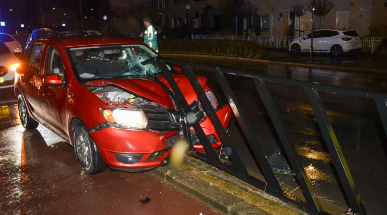 De man raakte door nog onbekende oorzaak de macht over het stuur kwijt en ramde een hekwerk, dat dient als afscheiding tussen het fietspad en de rijbaan. Bij de botsing boorde een deel van het ijzeren hekwerk zich door de voorruit van de auto.