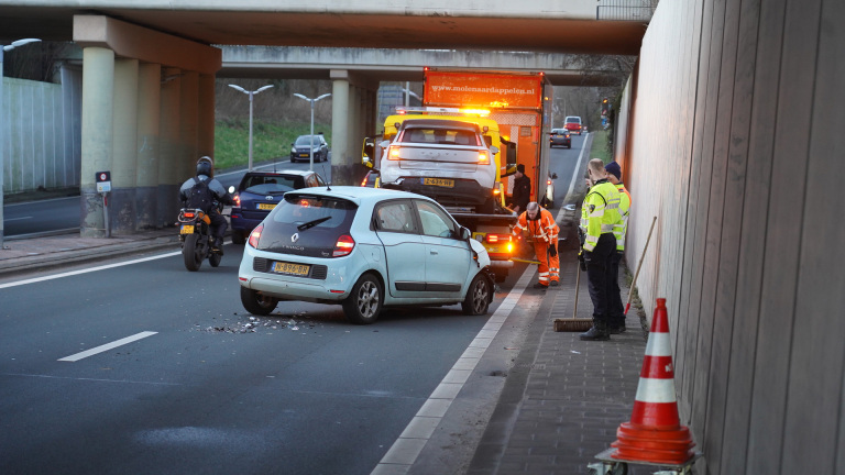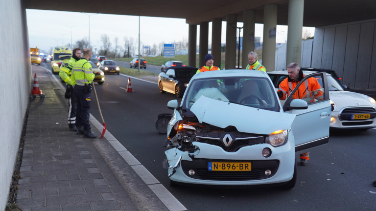 Het ongeval gebeurde op de rijbaan richting de Schagerweg. Onder het viaduct stond het verkeer stil. Een automobiliste zag dat te laat. Haar auto botste achterop de wachtende auto's en raakte zwaar beschadigd.