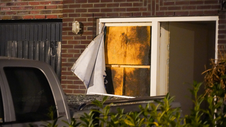 Door de ontploffing liep de voordeur schade op en werd een raam ernaast vernield. De pick-up truck die voor de deur stond geparkeerd was bezaaid met glas. De politie doet onderzoek naar de explosie. (foto's RVP Media)