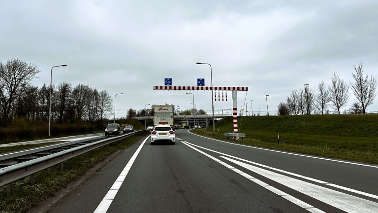 De nieuwe portalen moesten vrachtwagens en bussen tijdig waarschuwen als ze te hoog zijn voor het viaduct. Dat ging vorige week voortvarend: verschillende vrachtwagens maakten contact met de kegels die aan het hoogteportaal hingen. Kegels lieten door de aanrijding los en werden projectielen.