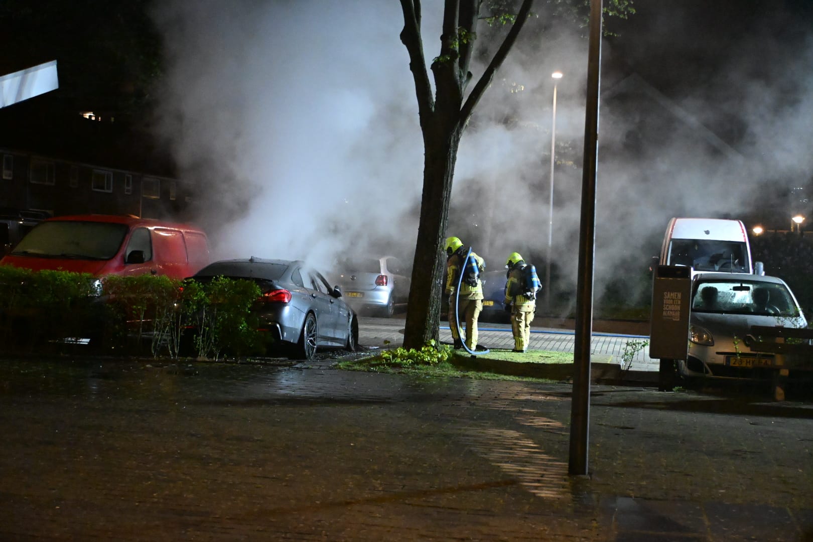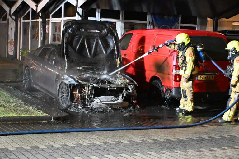 Ondanks de snelle actie van de brandweer kon niet voorkomen worden dat het voertuig - een BMW - aan de voorzijde volledig uitbrandde en als verloren moet worden beschouwd. Ook een busje dat er naast stond raakte beschadigd.