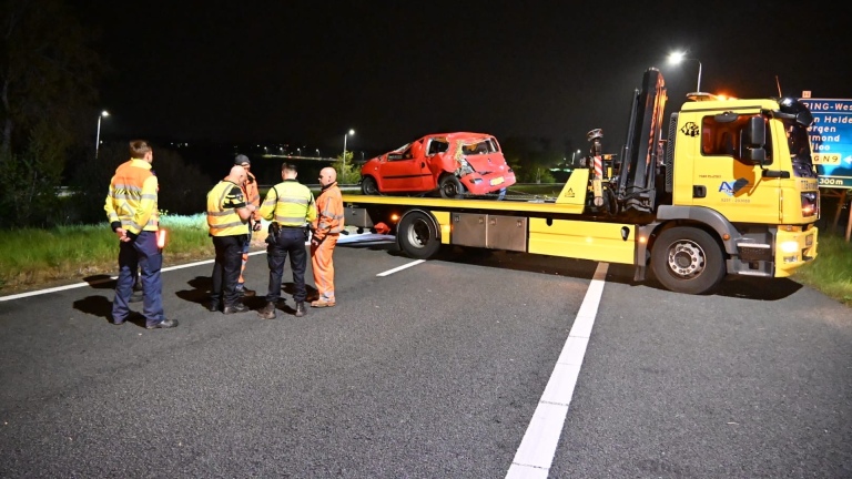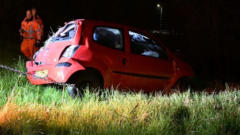 Per ambulance is de automobilist meegenomen naar het ziekenhuis. Een berger heeft de auto weggesleept en meegenomen.