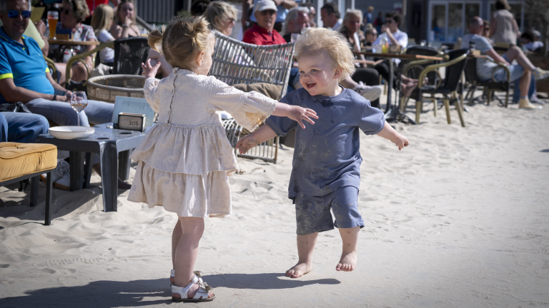 Het was bij strandpaviljoen Blonde in Bergen aan Zee waar de twee elkaar tegen het lijf liepen. “In het begin hield Yuna hem op afstand”, vertelt moeder Macy glimlachend. “Ace was meteen gecharmeerd van haar en bleef haar knuffels en kusjes geven, maar Yuna wist het nog niet zo zeker. Ze liep weg van hem, maar keek steeds weer achterom, riep 'kom, kom', en daar kwam Ace weer aan. Langzaam maar zeker bloeide er iets op tussen die twee.” Het was een aandoenlijk schouwspel waarin zelfs de ouders zichtbaar genoten van de jonge affectie. (tekst gaat verder onder de foto)