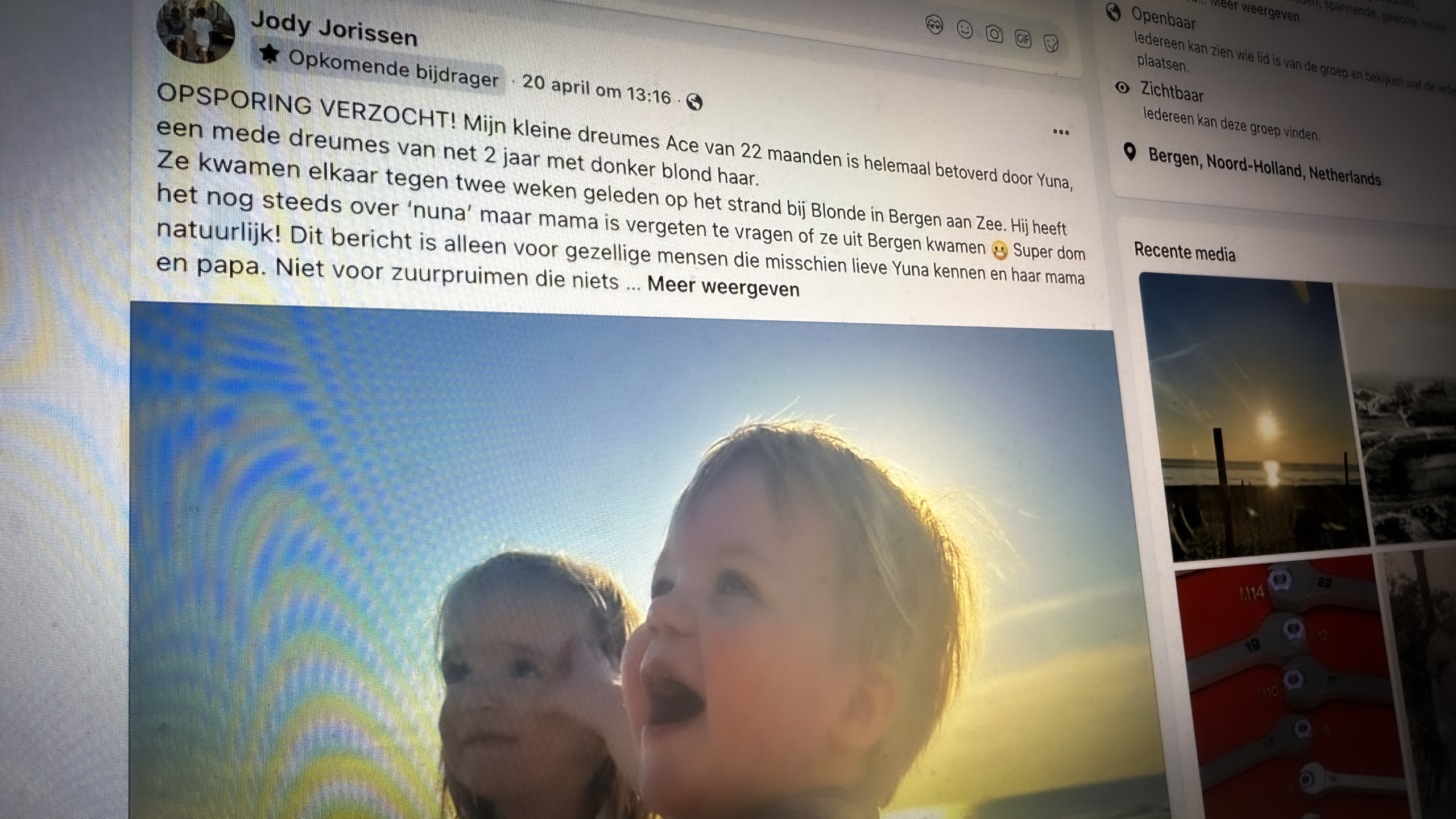 Tientallen berichtjes kreeg Macy van der Kelen, moeder van de inmiddels tweejarige Yuna uit Bergen, plotseling binnen. Moeders uit het dorp herkenden haar dochter op een foto die verscheen bij een oproep in de Facebookgroep 'Je bent Bergenees als'. Het verhaal over Yuna die een bijzondere ontmoeting had met het iets jongere jongetje Ace, had harten veroverd. Wat begon als een toevallige botsing tussen twee peuters, leek uit te groeien tot iets onverwacht moois.