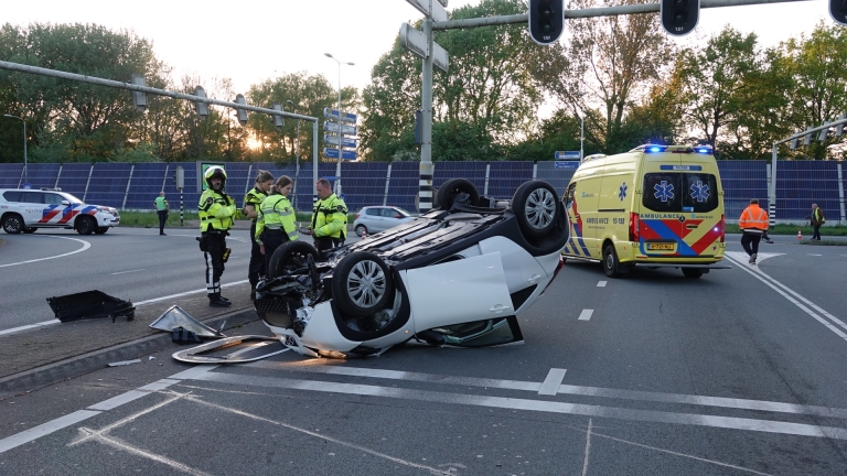 Op zondagavond rond 20.10 uur is een automobiliste met haar auto over de kop geslagen na een aanrijding. Dit gebeurde ter hoogte van de kruising van de N508 (Nollenweg) met de N245 (Huiswaarderweg) in Alkmaar. De bestuurder is naar het ziekenhuis vervoerd.