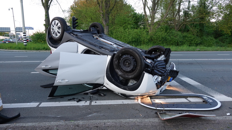 De bestuurder verloor door nog onbekende oorzaak de controle over het voertuig toen ze af wilde slaan vanaf de Huiswaarderweg naar de Nollenweg in Alkmaar. De auto ramde vervolgens een lantaarnpaal en kwam uiteindelijk ondersteboven tot stilstand.