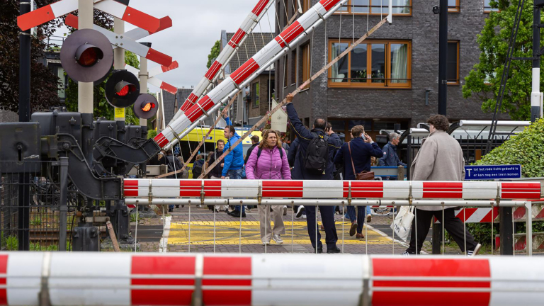 NS-personeel heeft na het incident de spoorbomen met de hand omhoog gehouden zodat mensen van het perron af konden.