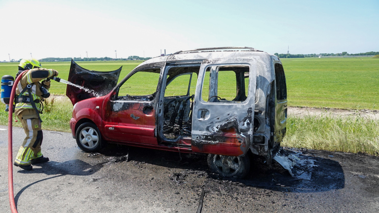 Twee van de inzittenden haalden daarna snel de derde inzittende - een vrouw in een elektrische rolstoel - uit de auto. Er werd een bluspoging gedaan, maar die was niet succesvol. De inmiddels gealarmeerde brandweer kon ook niet voorkomen dat de auto vrijwel volledig uitbrandde.