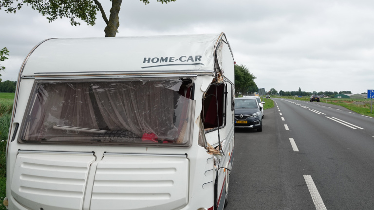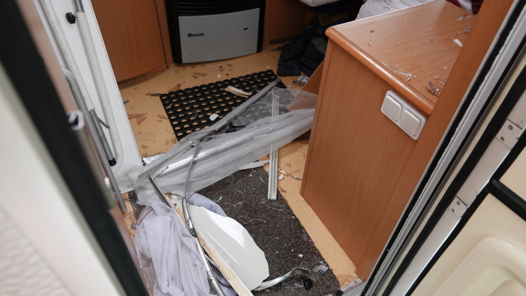 De schade was enorm. In de caravan knalden alle ramen en de caravan ligt vol met brokstukken. De vrachtwagen is na het ongeval doorgereden, vermoedelijk heeft hij de botsing niet door gehad.