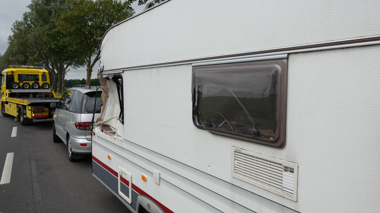 Een berger heeft de zwaar beschadigde caravan afgesleept.