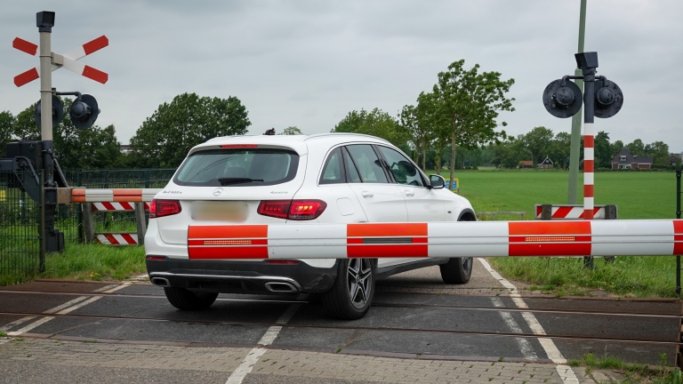 Door de stilstaande trein bleven de spoorbomen gesloten. Automobilisten stonden voor een dichte overweg, sommigen besloten om te rijden, maar een enkeling negeerde de slagbomen en stak alsnog het spoor over.