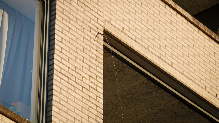 Zaterdagavond rukte de brandweer uit naar het Parelhof in Heerhugowaard vanwege een opvallend incident: uit één van de appartementencomplexen stroomde water naar beneden, dat via een afdakje de straat op liep.