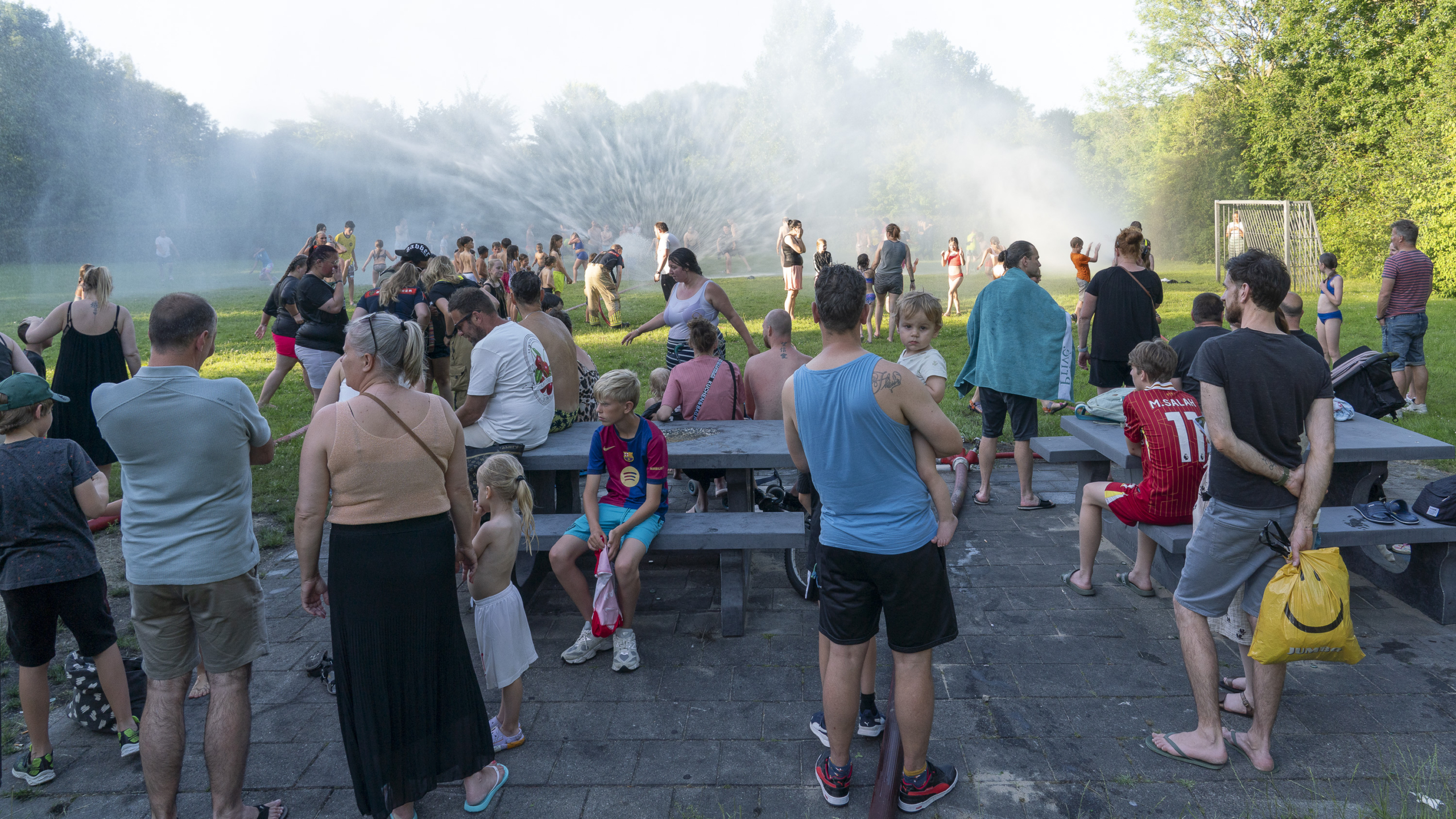 "Vanavond staan wij met 2 tankautospuiten in De Groene Voet, klaar voor een avond vol waterpret! We nemen onze slangen en spuiten mee, zorgen voor een flinke dosis verkoeling én plezier." Zo kondigde de brandweer van Koedijk maandag op social media een waterfestijn aan op De Groene Voet: "Geen oefening dit keer, maar gewoon lekker spelen met water – ook voor onszelf!"