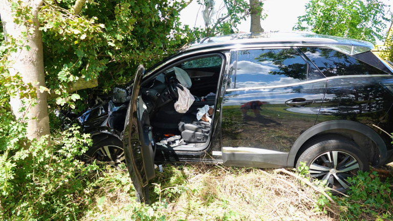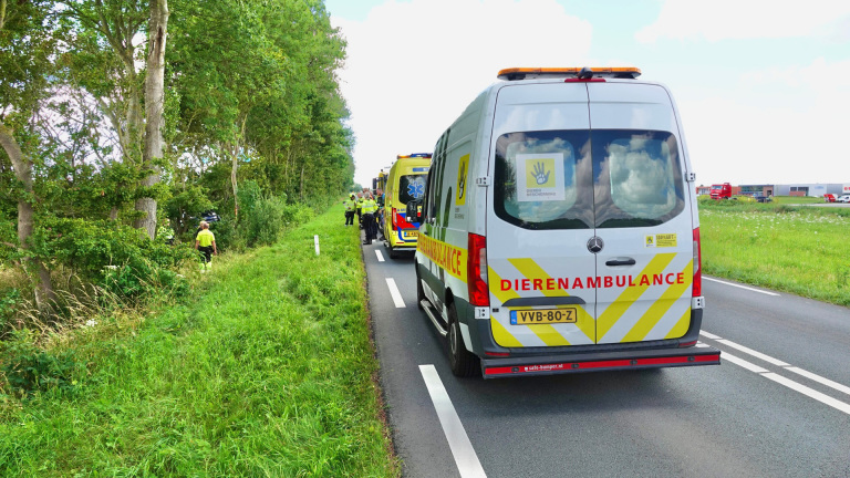 Een auto is donderdag aan het eind van de ochtend van de weg geraakt langs de N504 in Oudkarpsel. In de auto zaten een man en een hond.