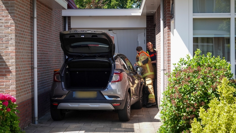 Vermoedelijk is de auto doorgeschoten bij het inparkeren. De garagedeur is door de botsing flink beschadigd. De vrouwelijke bestuurder moest behandeld worden in een ambulance na het ongeval. Die behandeling bleek voldoende te zijn, want de vrouw hoefde niet mee naar het ziekenhuis.