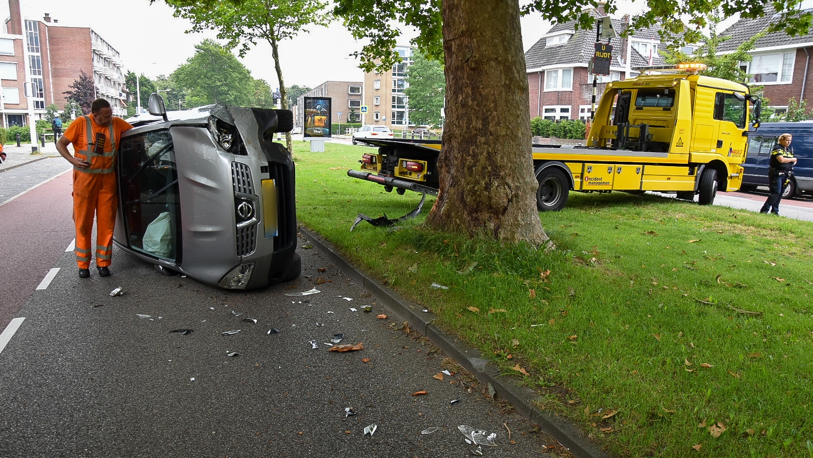 Het ongeluk gebeurde rond 07:45 uur, terwijl de vrouw richting de kruising met de Kennemerstraatweg reed. Om onbekende reden reed ze de middenberm op, waarna ze tegen een boom botste en de auto op de kant rolde. De rijbaan was enige tijd afgesloten voor het bergen van de auto.