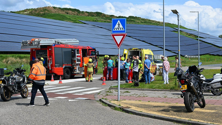 De Canta kwam aanrijden vanaf de Diamantweg en wilde afslaan naar de Olivijnstraat. Hoe het voertuig op zijn kant is beland, is nog onduidelijk. De weg was enige tijd volledig afgesloten. Een bergingsbedrijf zal de Canta afslepen.