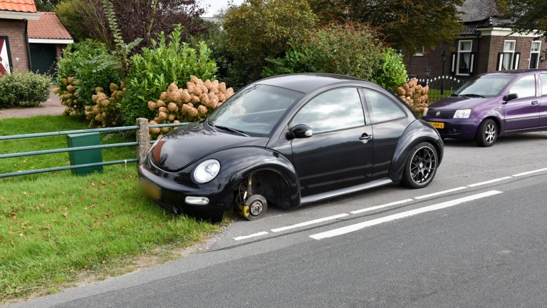 Een bizar ongeval heeft zaterdagochtend plaatsgevonden op de Hoeverweg in Egmond aan den Hoef. Bij een auto schoot een voorwiel los en dat rolde daarna vol tegen de voorzijde van een oldtimer die in tegenovergestelde richting reed.