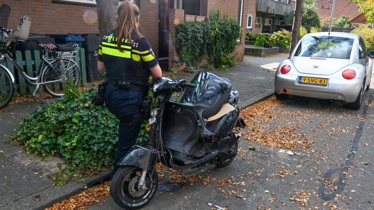 De politie heeft camerabeelden uit de omgeving opgevraagd en inmiddels ook bekeken. De scooter is in beslag genomen voor verder onderzoek. Voor zover bekend raakte niemand gewond bij het ongeval.