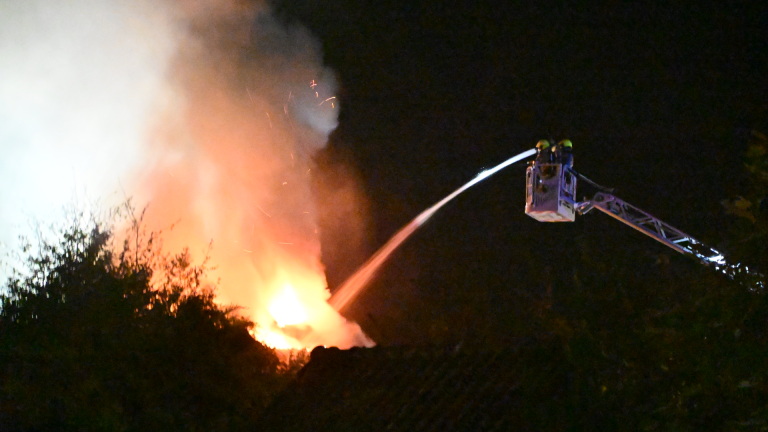 De brandweer schaalde bij aankomst direct op naar 'grote brand' en meerdere blusvoertuigen kwamen ter plaatse om de brand te bestrijden. De vlammen sloegen al snel uit het dak.