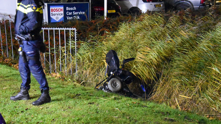 De politie vermoedt dat de scootmobiel door baldadigheid in het water en tussen het riet terecht is gekomen. De politie heeft de scootmobiel met lint afgezet om nieuwe meldingen te voorkomen.