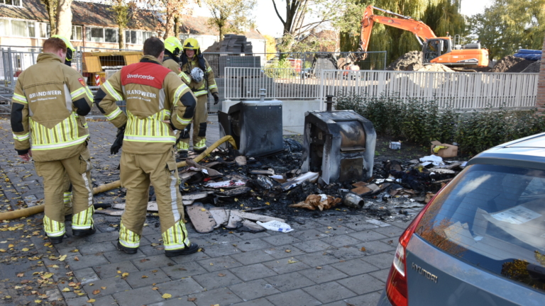 De brand werd rond 11:50 uur gemeld. Eerder op de ochtend was er al een brandje op dezelfde plek. De twee vuilcontainers zullen vermoedelijk moeten worden vervangen.