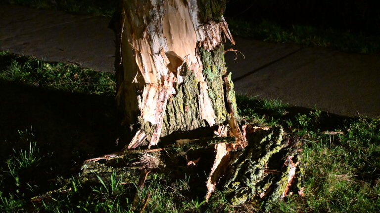 De auto van de bestuurder raakte zwaar beschadigd en moest worden afgevoerd. Ook de boom liep aanzienlijke schade op. (fotoβs: Interactix Media)