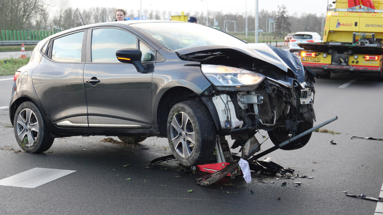De auto kwam na de botsing tot stilstand op de andere rijbaan. Terwijl de inzittenden ongedeerd bleven, was er een hoop schade. Voor de afhandeling van het ongeval werd een rijstrook tijdelijk afgesloten voor het verkeer. Een bergingsbedrijf nam de auto mee naar een schadebedrijf. (foto's RVP Media)