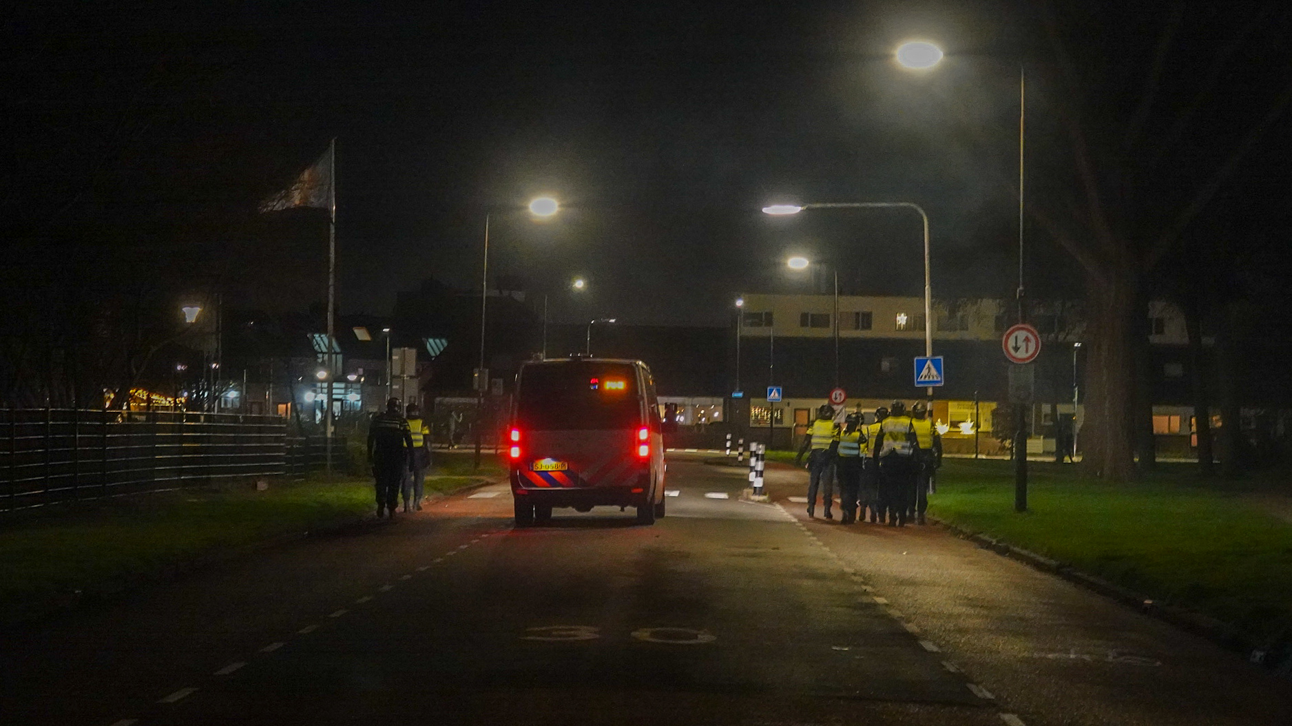 De Mobiele Eenheid heeft uitgerust met wapenstokken en schilden door de wijk gelopen om groepen jongeren uit de kern van de wijk te krijgen.ย Er is niemand aangehouden. De brandweer stond paraat om eventuele brandjes te blussen.