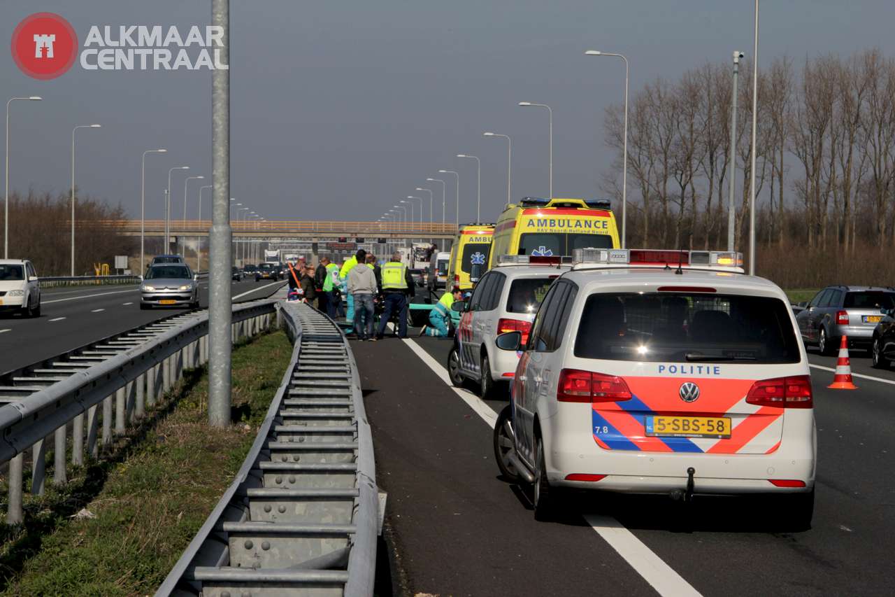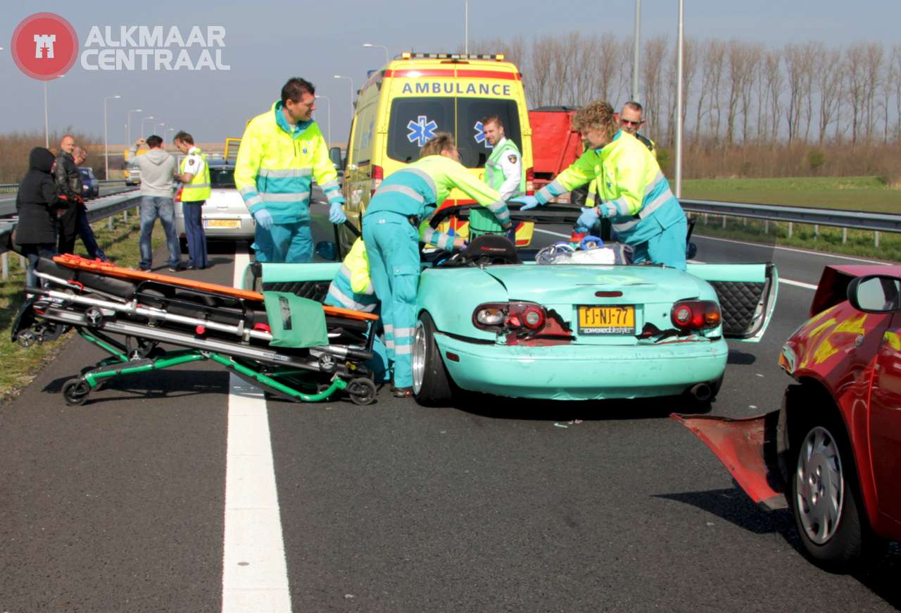 Heiloo, 28 maart 2014. Rond 13:30 uur vond op de A9 t.h.v. Heiloo een ongeval plaats waar vijf, maar waarschijnlijk zes auto's bij betrokken waren. De voorlaatste automobilist was de meest onfortuinlijke, hij werd nadat hij zelf zijn voorganger had geraakt hard van achteren aangereden. Ook auto's daarachter raakten elkaar maar dat heeft alleen relatief lichte blikschade tot gevolg gehad. Ambulancepersoneel heeft het slachtoffer met plank en nekbrace gestabiliseerd en daarna uit zijn Mazda Miata gehaald. Naar verluid heeft 'de oorzaak', de plaats van het ongeval' verlaten. Het zou gaan om een witte of grijze Toyota Auris.