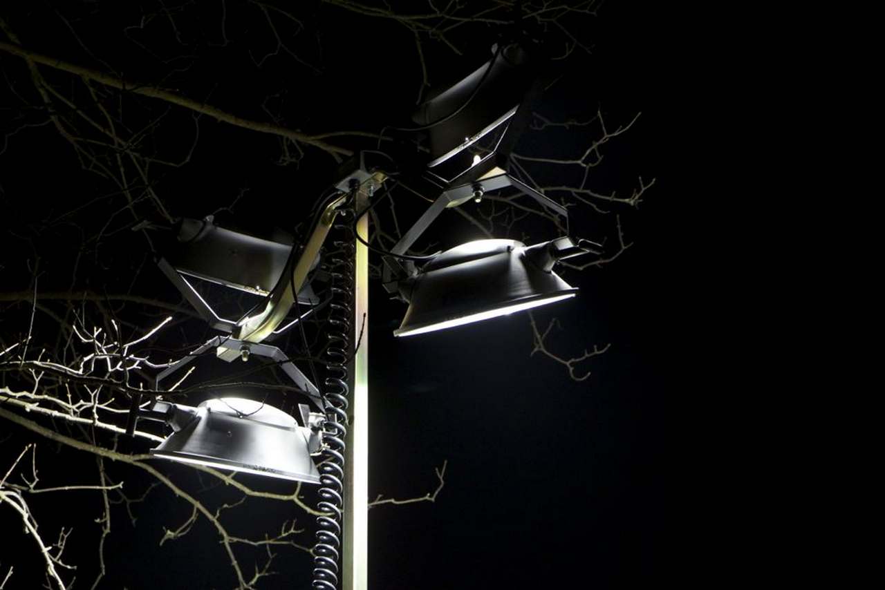Heerhugowaard, 30 maart 2014. Ondanks de camera die voor permanent toezicht moet zorgen is het toch gelukt om brand te stichten bij het clubhuis van motorclub Bandidos in Heehugowaard. Dat iets dergelijks ongezien kon gebeuren is waarschijnlijk het gevolg van een gebrek aan zicht bij duisternis, want sinds zaterdag staat het clubhuis 's avonds en 's nachts vol in het licht van vier op een mobiele mast geplaatste schijnwerpers. Stroom wordt geleverd door een aggregaat. De operationele kosten voor de lichten en het cameratoezicht komen voor rekening van de gemeente Heerhugowaard.