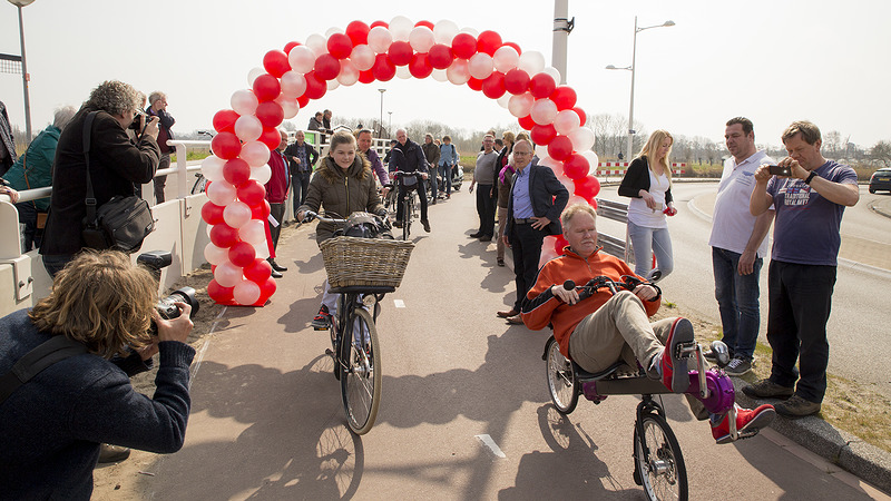 Vandaag heeft wethouder Jan Nagengast het nieuwe fietspad langs de Zeswielen in Alkmaar feestelijk geopend. Om de eerste vermelding van het project Zeswielen terug te vinden in het gemeentelijk archief moet teruggezocht worden tot 1975. Een raadslid stelde toen vragen over de verkeersveiligheid vanwege de door fiets en auto gedeelde weg. Dan volgen er de nodige onderzoeken, projectgroepen en haalbaarheidsonderzoeken en is het opeens 2010 en besluit de gemeenteraad tot het realiseren van een fietspad achter de huizen langs de Zeswielen.