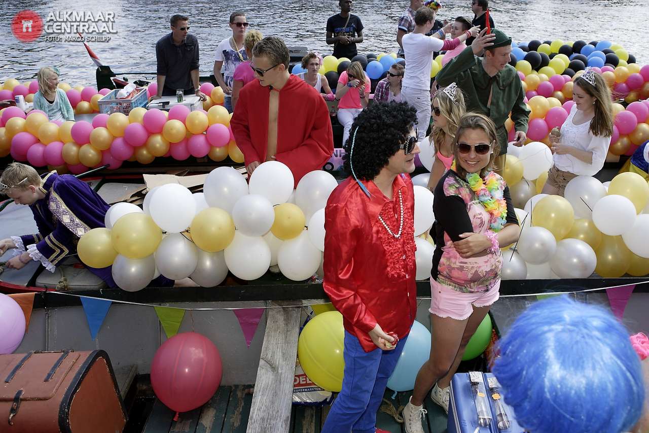 Alkmaar, 31 mei 2014. Het deed zelfs een beetje vertrouwd aan op de Bierkade: de beukende bassen van de muziek, de vele boten en de kleurrijke personen. De Roze Week 2014 is voorbij en zoals altijd werd de week afgesloten met de grachtenparade. Dit jaar trok Maaike Kardinaal als voorzitter van de Roze Week Alkmaar aan de spreekwoordelijke touwtjes en ze was zichtbaar in haar nopjes met de mooie opkomst: 26 boten. Natuurlijk waren de politieke partijen van de eh... partij, maar door het grotere aantal boten die 'de zaak' vertegenwoordigden had de parade een aanmerkelijk minder politiek karakter dan de editie van vorig jaar. Tot het startsein was er nog toch wel wat zenuwachtig heen en weer geloop van roze polo's van de organisatie, maar toen om 14.00 uur het geluid van de toeter klonk en de bonte stoet vanaf het Noordhollandsch Kanaal de Alkmaarse grachten opdraaide zat de sfeer er meteen goed in. De foto-impressie is gemaakt door Alkmaar Centraal fotograaf Marco Schilpp.
