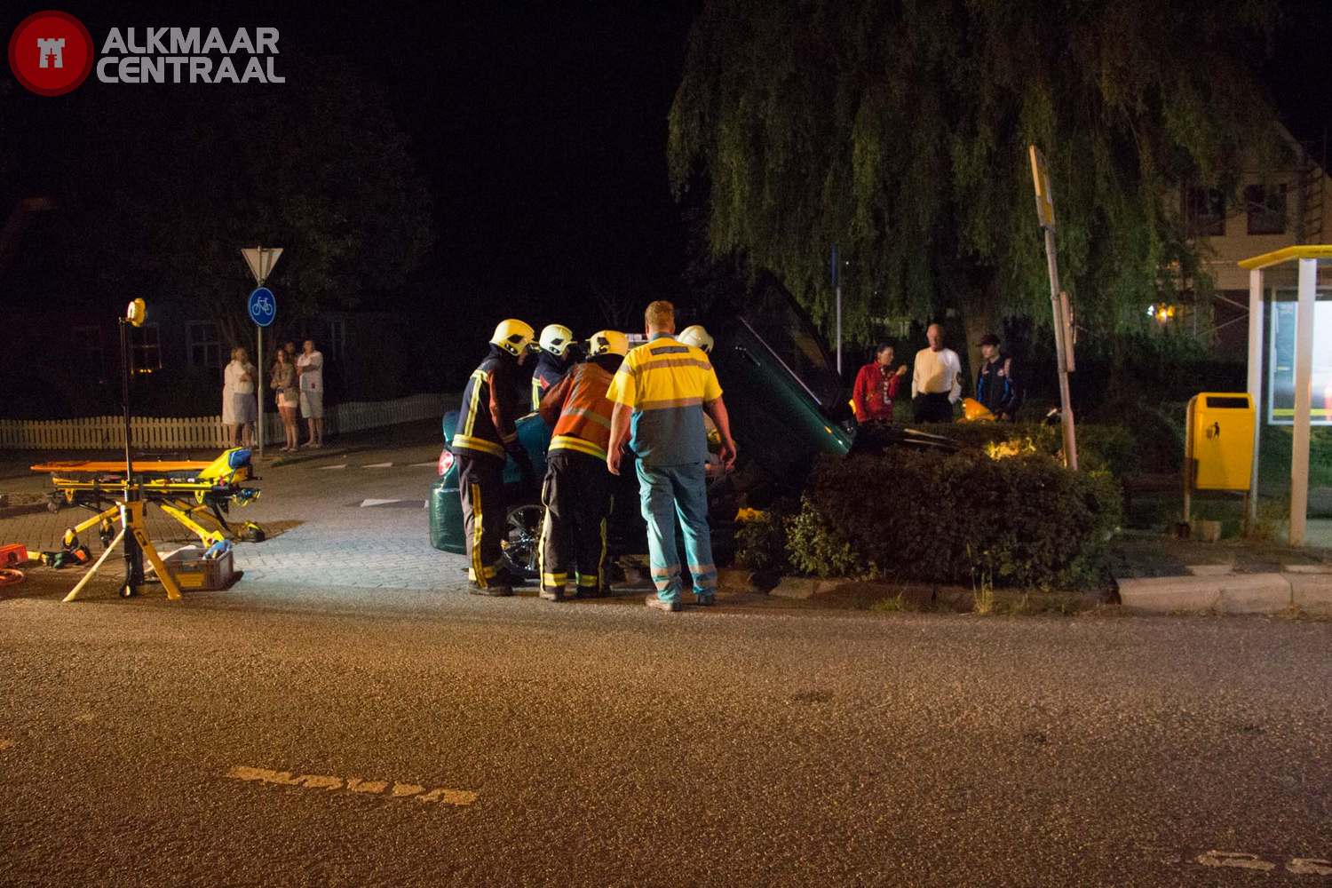 Warmenhuizen, 10 juni 2013. In de nacht van zondag op maandag is de 23-jarige bestuurder van een 'gepimpte' Chrysler Neon gewond geraakt bij een eenzijdig ongeval. Het slachtoffer reed op de Stationsstraat in Warmenhuizen toen hij ter hoogte van de t-splitsing met de Vijfven de macht over het stuur verloor en met zijn auto in de bosjes eindigde.ย De schade aan de auto viel mee, maar de bestuurder klaagde over een gebrek aan gevoel en tintelingen in zijn benen waarna besloten werd om de auto open te knippen en de bestuurder er met een wervelplank rechtstandig uit te halen. Er is waarschijnlijk geen drank in het spel en er lijkt ook niet te hard te zijn gereden. In het ziekenhuis zal het bloed van de bestuurder op andere stoffen worden getest. Vrienden van de man wisten te vertellen dat hij al sliep, maar door zijn vriendin wakker was gebeld met het verzoek haar op haar werk op te halen. (foto's DNP.NU)