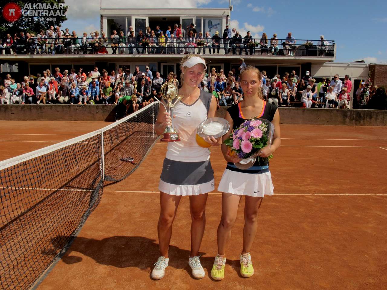 Alkmaar, 23 juni 2014. De afgelopen week stond tennispark De Hout voor de zeventiende keer in het teken van het internationale Future tennistoernooi. Waar vorig jaar nog de Oranjehof op de sponsorborden prijkte, was het dit jaar Bowling- en kegelcentrum Victorie Plaza dat zich hoofdsponsor mocht noemen. De vertrouwde tent op baan 6 vormde samen met het vorig jaar vernieuwde clubhuis het onderkomen en toevluchtsoord voor het zondag in grote getale opgekomen publiek. Deelnemers uit de hele wereld komen tijdens het toernooi naar Alkmaar om punten te verzamelen voor de wereldranglijst bij de dames (WTA) en de heren (ATP). De finales bleken spectaculair, er werd om iedere punt gevochten. Sportfotograaf Peter Heins legde dat vast in een mooie fotoserie.