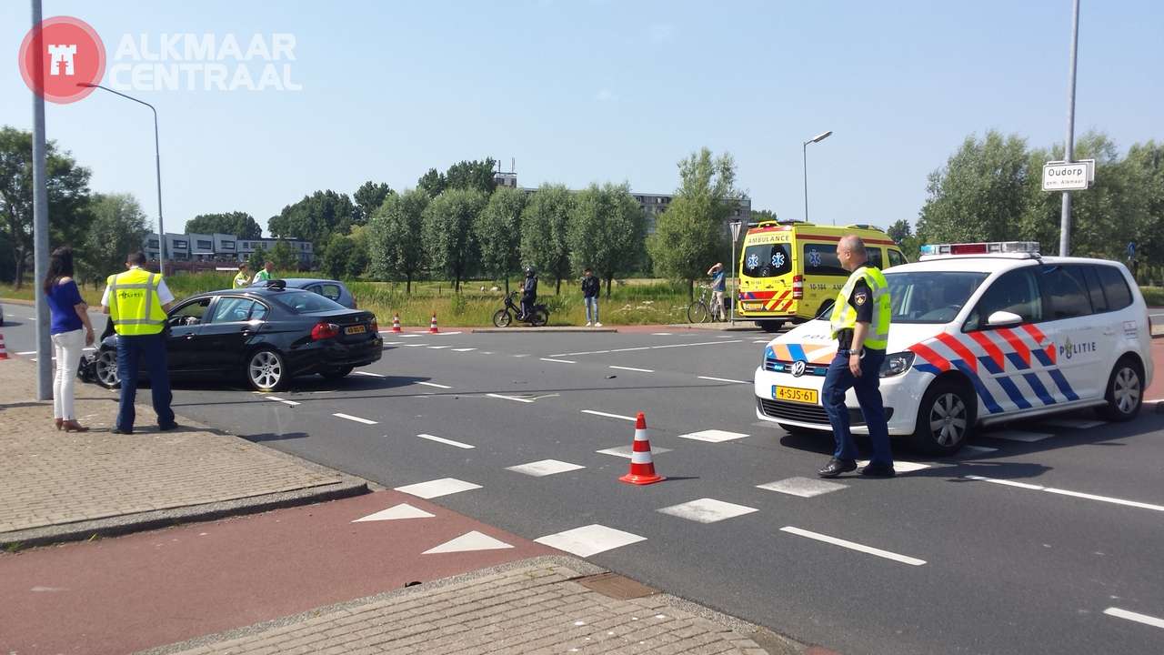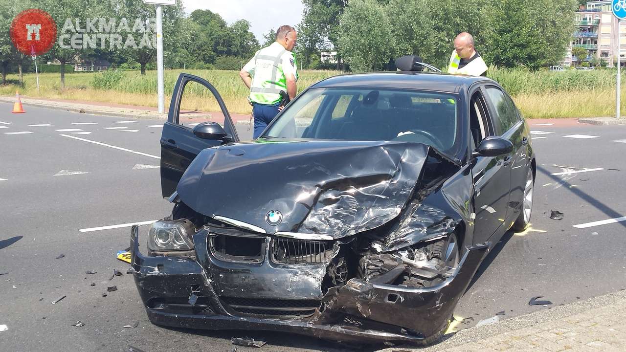 Alkmaar, 26 juni 2014. Donderdagmiddag ging het mis op de Nieuwe Schermerweg. Ter hoogte van de Westerstraat wilde een automobilist de voorrangsweg oprijden, maar zag daarbij een al op de Nieuwe Schermerweg rijdende BMW over het hoofd. De bestuurder van de BMW kon een botsing niet meer vermijden. Beide bestuurders zijn met onbekend letsel naar het ziekenhuis gebracht, de Nieuwe Westerweg is in verband met het onderzoek van de dienst Verkeers Ongevallen Analyse en de opruimwerkzaamheden enige tijd afgesloten geweest. (foto's: DNP.NU/Lorenzo Derksen en Rob Bakker)