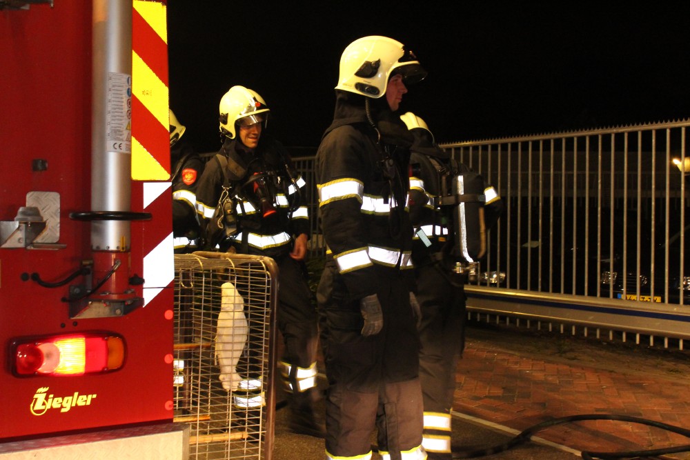 Alkmaar, 02 juli 2014. In de nacht van dinsdag op woensdag ging rond kwart over één het brandalarm af bij een autobedrijf aan de Professor van der Waalstraat. Er bleek inderdaad sprake te zijn van brand, begonnen aan de zijkant van het bedrijfspand. Volgens de eigenaar heeft iemand autobranden in de brand gestoken. Of dat inderdaad het geval is zal nog moeten blijken, niemand heeft iets gezien, maar de buren hebben camerabeelden. Die beelden worden in de loop van woensdag bekeken, ook doet de politie onderzoek naar een bestelbus die mogelijk gebruikt is om over het hek te klimmen. Het brandalarm van het bedrijf heeft er voor gezorgd dat de brandweer snel ter plaatse was, zodat erger voorkomen kon worden. De brand heeft een auto in de spuiterij en het pand zelf beschadigd, de brandweer heeft de 'bedrijfspapagaai' uit het pand gered. (foto's: DNP.NU/Lorenzo Derksen)